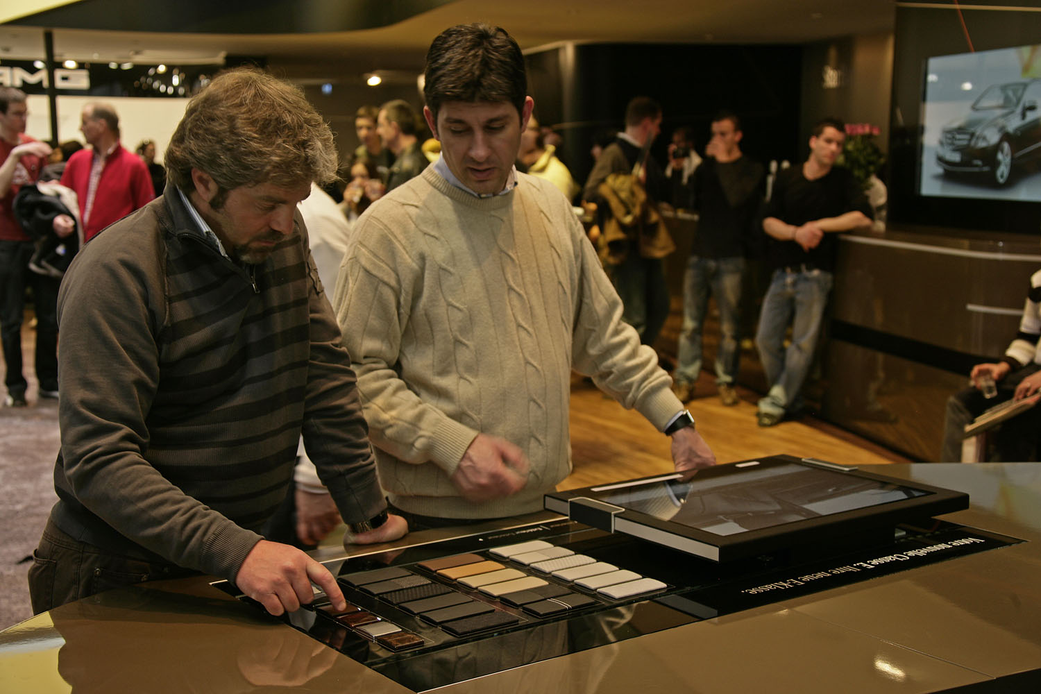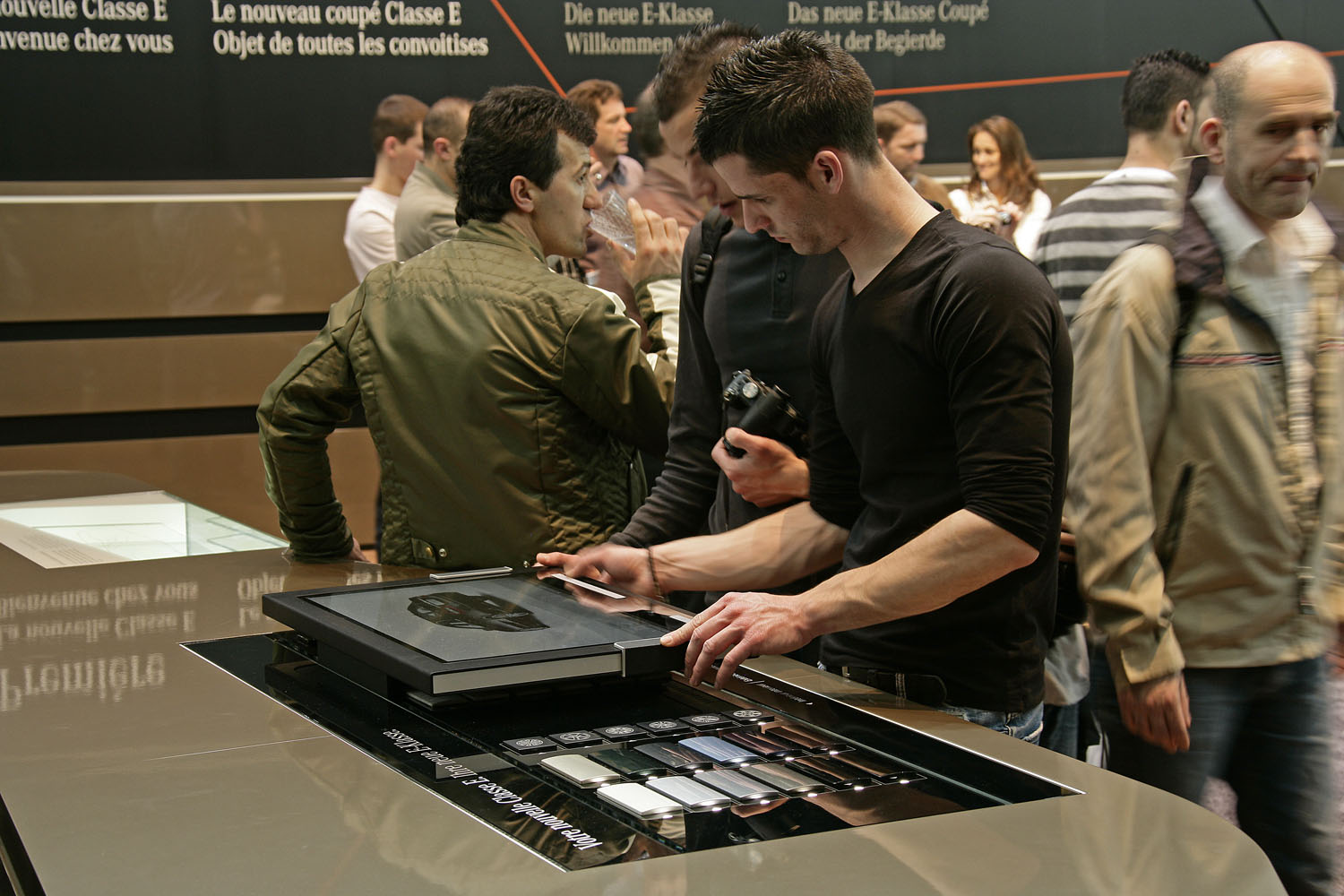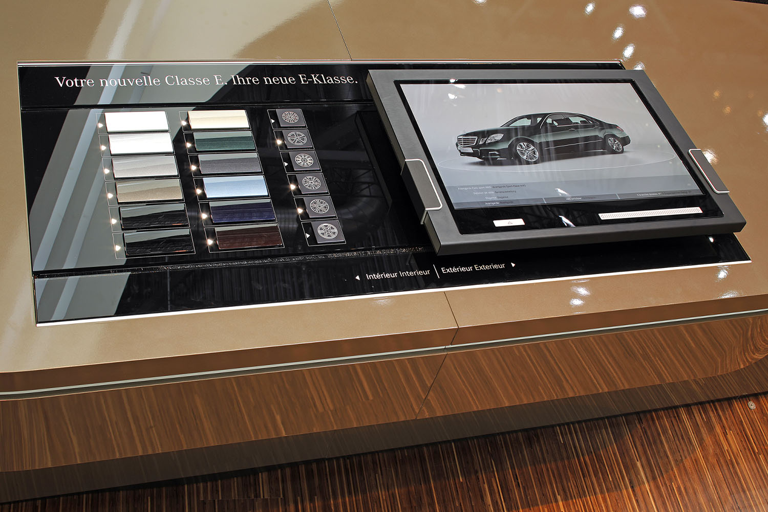 Während 2006 der Wechsel zwischen Ex- und Interieur noch mit zwei unabhängig von einander agierenden Interfaces realisiert werden musste, konnte man 2009 bereits beide Ansichten auf einem Interface darstellen. Durch eine manuelle Schiebebewegung des 30" Bildschirms, mit einer Auflösung von 2560x1600 Pixel, konnte man nahtlos zwischen der Innen- und Aussenansicht der E-Klasse wechseln.