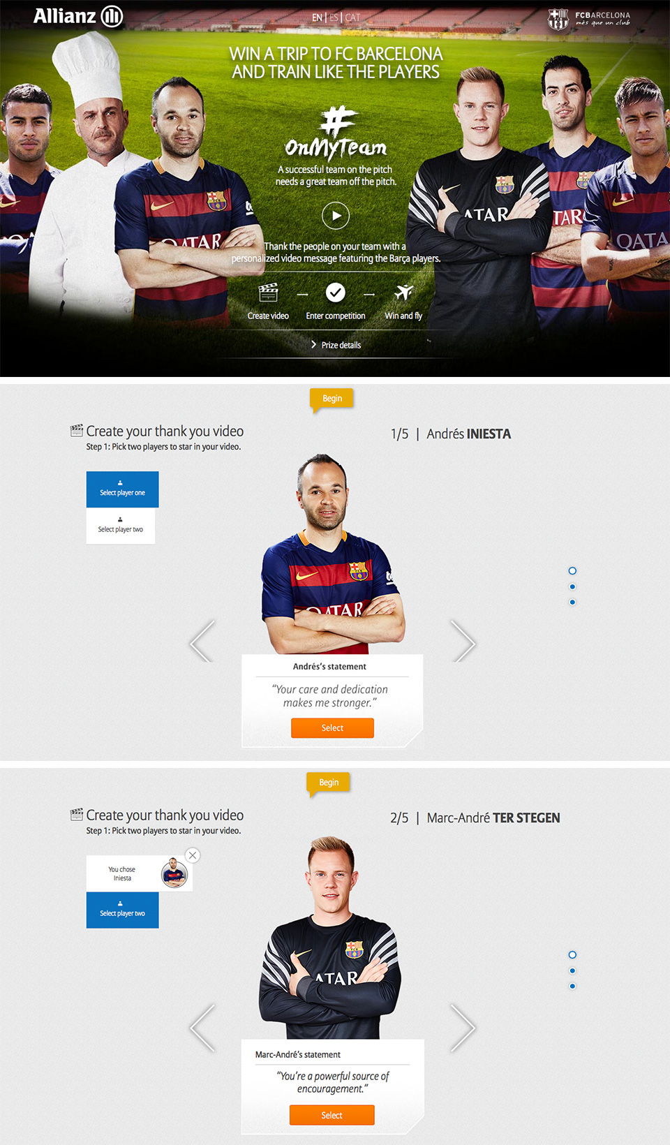 Hierbei sollte ein individuelles Video, das im Auftrag der Allianz, die einer der Hauptsponsoren des FC Barcelona waren, realisiert werden. In diesem Video sollte es für Fans des Clubs möglich sein, Freunde und Bekannte mit einer personalisierten Videobotschaft zu grüßen.