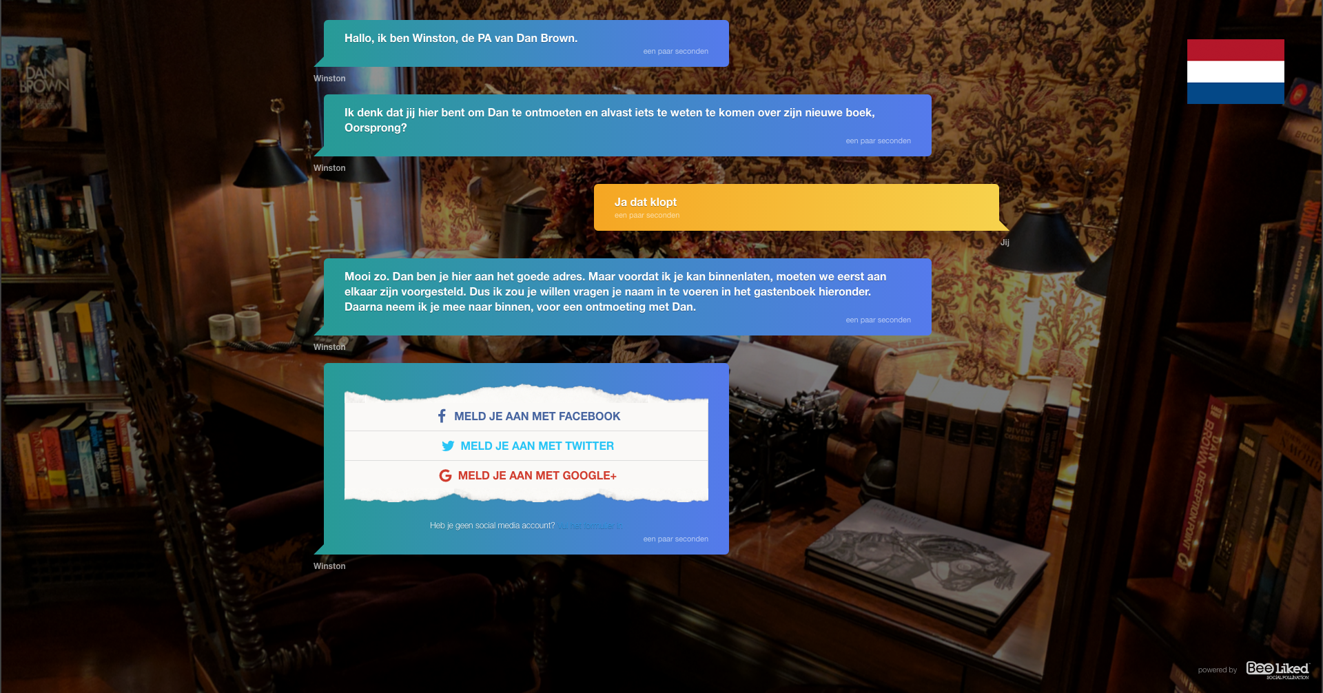 Kurz vor Veröffentlichung des Buches ‘Origin’ am 04.10.2017 gab es ein Update für die Seite und auch das Video. Zunächst wurde die Seite für sieben Länder (sechs Sprachen) erweitert. Nach der Länderwahl kommt man zu einem Chat mit „Winston“, dem persönlichen Assistenten von Dan Brown.