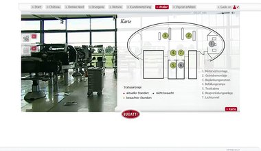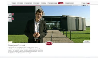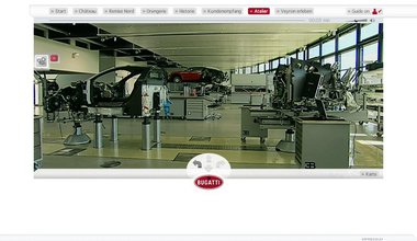 Vorstellung der Produktionsstätte und des historischen Geländes der Automobilmarke Bugatti durch eine virtuelle Tour. Das Anwesen im französischen Elsass, dessen reale Besichtigung bislang wenigen Gästen vorbehalten ist, soll jetzt auch virtuellen Besuchern einen Einblick in die Historie sowie in die hochmoderne Manufaktur ermöglichen.