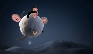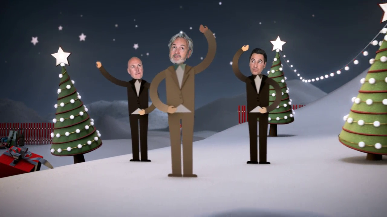 Drei ausgeschnittene Papierfiguren, dessen Köpfe aus Fotos bestehen, tauchen in der Winterlandschaft auf. Man erkennt: es sind die Geschäftsführer der IP Deutschland. Eine riesige (Papier-) Schneekugel rollt heran und reißt die Figuren mit sich. Es entsteht eine wilde Fahrt durch die phantasievolle Papierlandschaft.