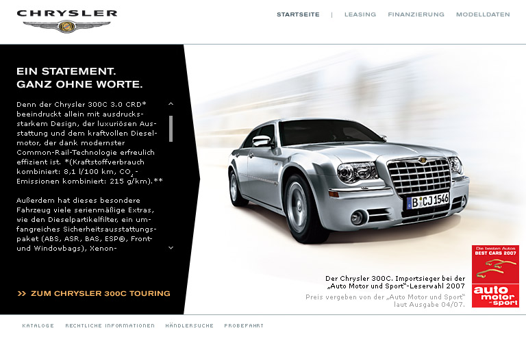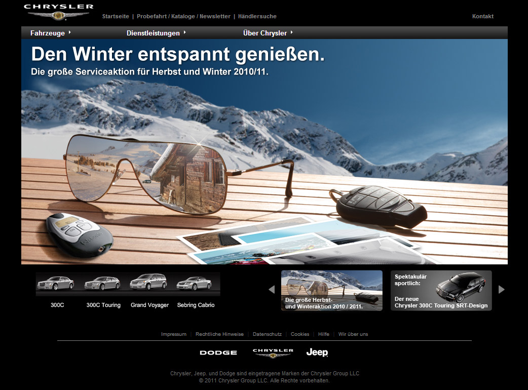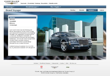 Trotz Individualität der Marke Chrysler, in Tonalität und Bildsprache, ist die Struktur zugunsten eines einheitlichen Erscheinungsbildes der drei Chrysler Marken den Markensites von Jeep und Dodge angeglichen.