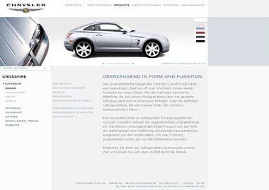In der folgenden Phase (2005) wird die deutsche Präsenz im international ausgerollten Day-CMS der Marke Chrysler nach von DDD entwickelten Konzept-Layouts umgesetzt, adaptiert und gepflegt. Mit einem weiteren Relaunch (2007) stellen wir die Seite auf Interwoven um.