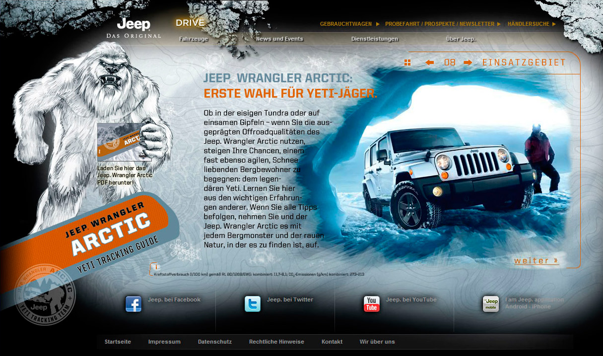 Etablierung der Traditionsmarke Jeep auf dem deutschen Markt inklusive Pflege und Ausbau aller Internetaktivitäten sowie Betreuung der Retailer.