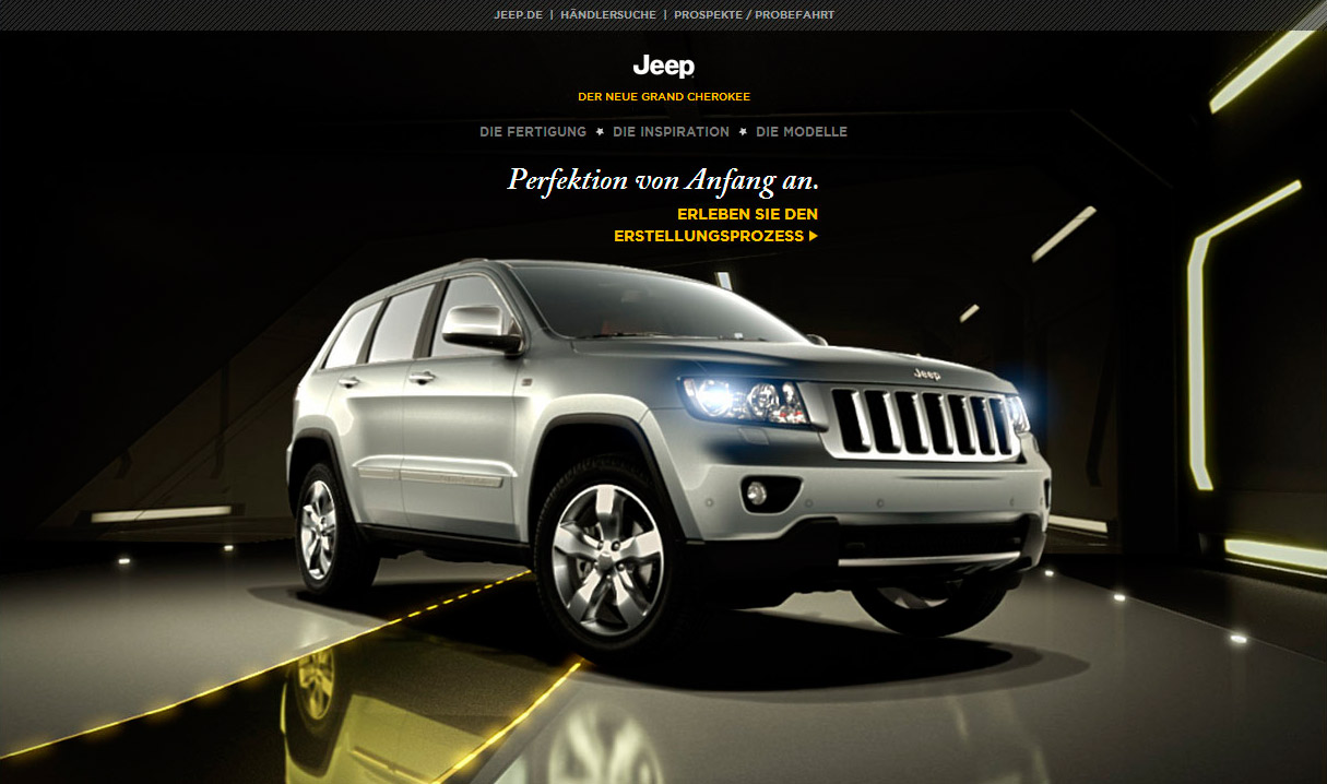 Seit Beginn der Zusammenarbeit von DDD und Jeep wird regelmäßig das Design angepasst bzw. auch völlig neu gestaltet. Die Fahrzeuge von Jeep werden auf diese Weise mit neuen Technologien und Designideen immer „State of the Art“ präsentiert. Mit dem Produkt-Launch des Jeep Grand Cherokee 2011 wird ein neuer Schritt in der digitalen Präsentation der Fahrzeuge eingeläutet, dessen Basis der amerikanische Markenauftritt ist. Dieser wird für den deutschen Markt adaptiert und bietet z.B. ein Special, das die Fertigung des neuen Jeep Grand Cherokee beschreibt, Einblicke in die Welt von Jeep gewährt und in Experten-Movies die Original-Ingenieure von Jeep Details zur Entwicklung des Fahrzeugs erzählen lässt (Voice Over in deutscher Sprache).
