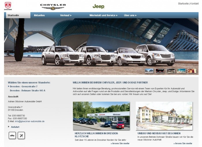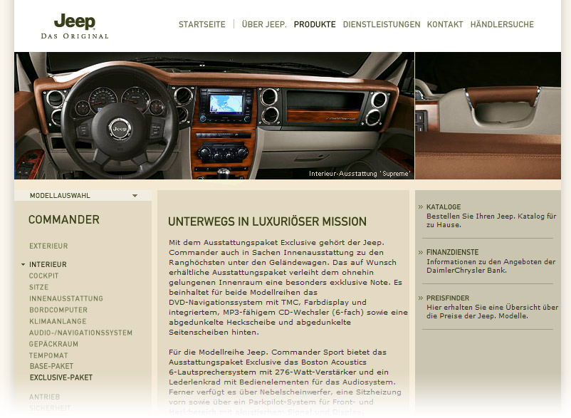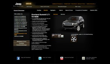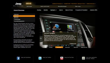 Trotz Individualität der Marke Jeep, in Tonalität und Bildsprache, ist die Struktur zugunsten eines einheitlichen Erscheinungsbildes der drei Chrysler Marken den Markensites von Chrysler und Dodge angeglichen.