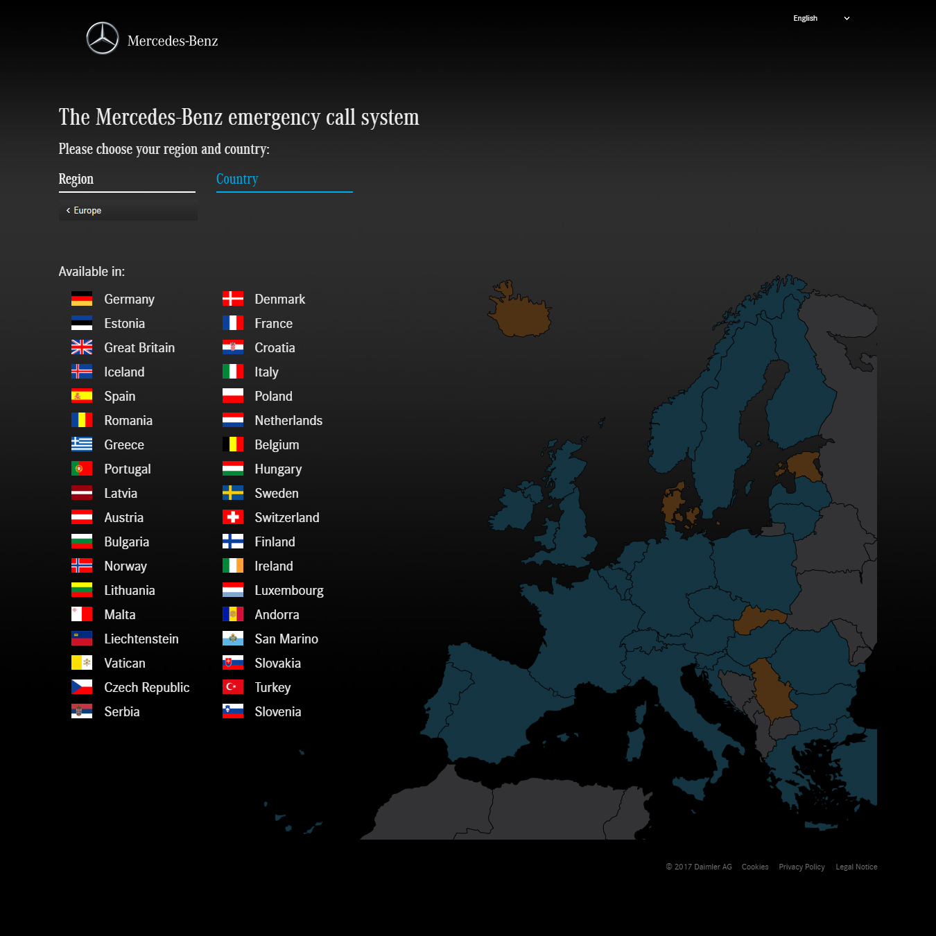 Eines unserer Mercedes-Benz Projekte an dem wir schon längere Zeit arbeiten und wir sehr stolz sind, bekam im Jahre 2014 aus CI Gründen eine Grunderneuerung, sprich: Alles musste neu. Wer mehr über das eCall System erfahren will, kann hier den Artikel darüber lesen. Das Projekt wächst immer weiter und es kommen nicht nur neue Länder sondern auch ganze Regionen dazu. Ursprünglich mit den Ländern in und um Europa angefangen, kommen inzwischen diverse eCall unterstützte Länder aus den Regionen Nordamerika, über Nah- und Fernost, bis zum Südpazifik hinzu.