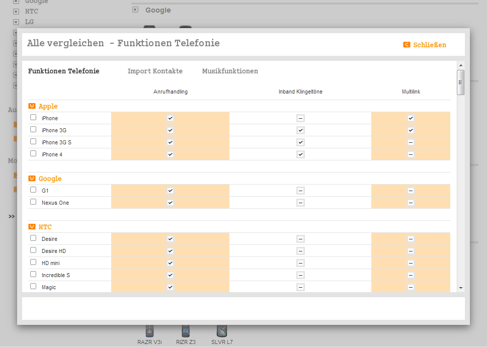 Produktion eines Tools, das die Kompatibilität zwischen dem smart Audiosystem und diversen Handys sowie deren Funktionen anzeigt.