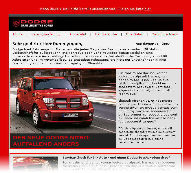 A relaunch in 2010 further optimizes the design and usability of the German Dodge presence.